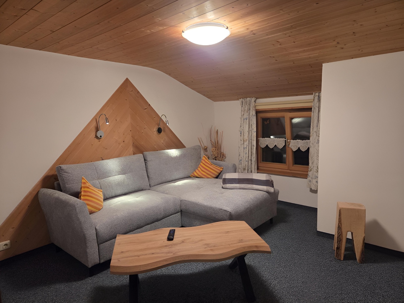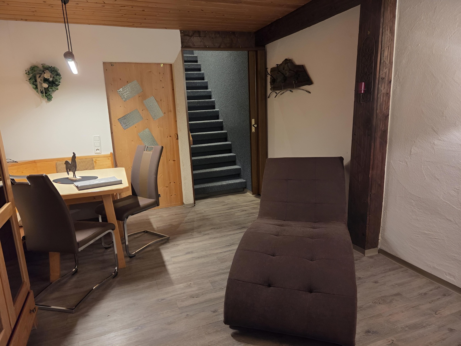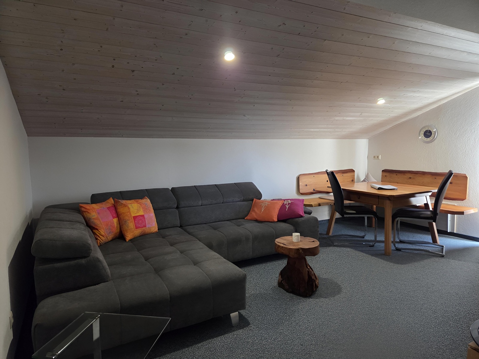befindet sich im 1. Stock mit kleinem Südbalkon, ist aber durch die Hanglage des Hauses ebenerdig begehbar. Im Eingangsbereich Küche und Esszimmer. Im 2. Stock Schlafzimmer, Dusche und WC (getrennt) und gemütliches neues Wohnzimmer. Kindersicherung an der Treppe, Zustellbett für Kind bis 15 Jahre möglich.